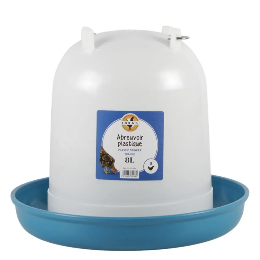 Abreuvoir bleu de plastique 8L. Peut convenir pour 8 poules