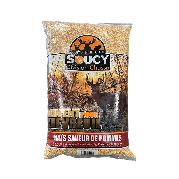 Moulée conçue pour attirer le chevreuil en période de chasse. Cette moulée combine le bon goût de la pomme, mais avec l’énergie et la protéine que le grain apporte. Peut être utilisée directement au sol ou dans des mangeoires.