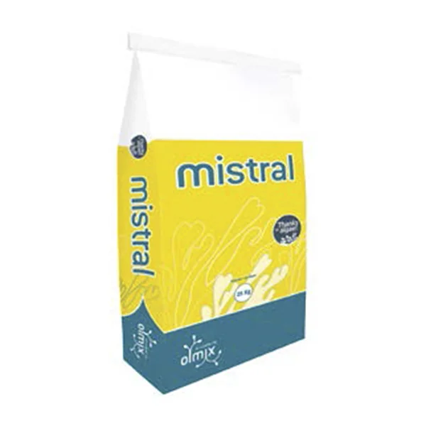 Le Mistral est un produit grandement reconnu dans les élevages porcins et bovins. Ce produit est composé d’algues concentrées, d’absorbants végétaux, d’argile, d’alginates et d’huiles essentielles. Il absorbe et empêche la fuite d’ammoniac résiduel et élimine l’humidité dans la litière. De plus, le Mistral améliore l’état général des animaux en réduisant les problèmes de pieds, en prévenant les problèmes de trayons chez la vache laitière, et en aidant à réduire la perte de chaleurs du corps chez les porcelets naissants. Il est non irritant pour la peau et non corrosif pour l’équipement.