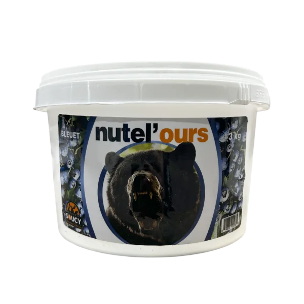 Nutritif et très collant. Le nutel’ours est fait pour appliquer sur votre baril, sur les arbres et au environ de votre site d’appâtage.