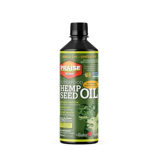 L’huile de graines de chanvre Praise fournit une saine dose d’acides gras essentiels oméga 3-6. Le complément Praise favorise la fonction immunitaire et l’énergie, l’état de la peau et du pelage, la santé cardiaque, la mobilité, la santé musculaire et la digestion.