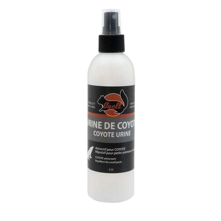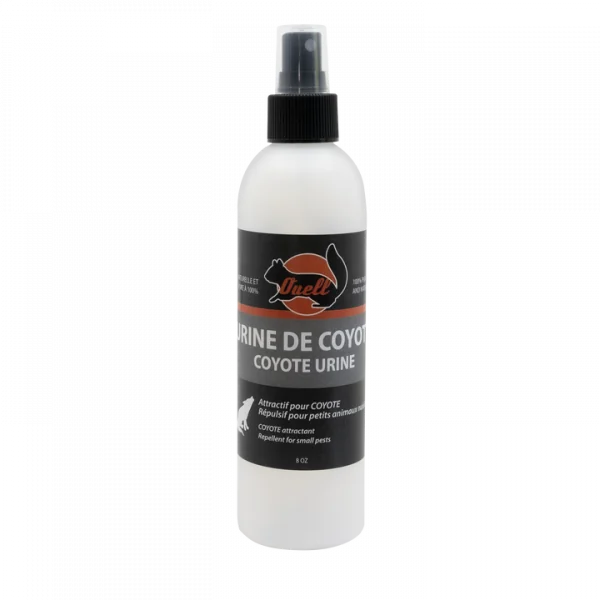 Urine de coyote pure à 100%. Un excellant attractif pour les coyotes et il peut également repousser les petits animaux nuisibles ou les chevreuils des vergers.