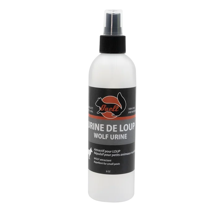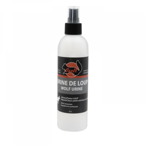 Urine de loup pure à 100%. Un excellant attractif pour les loups et il peut également repousser les petits animaux nuisibles ou les chevreuils des vergers.